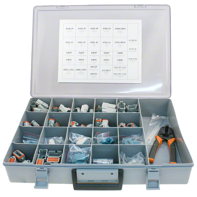 | Category | Kits | Values | 543 pcs - Assorted 2, 3, 4, 6, 8, 12 Pin Plugs and Receptacles, Contacts, Seals, Wedges, Case Tool, Removal Tool |