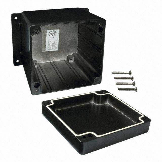 | Features | Card Guides, PCB Supports, Watertight | Detailed Description | Box with Mounting Flange Metal, Aluminum Black Cover Included 4.750" L x 4.750" W (120.65mm x 120.65mm) X 4.000" (101.60mm) |