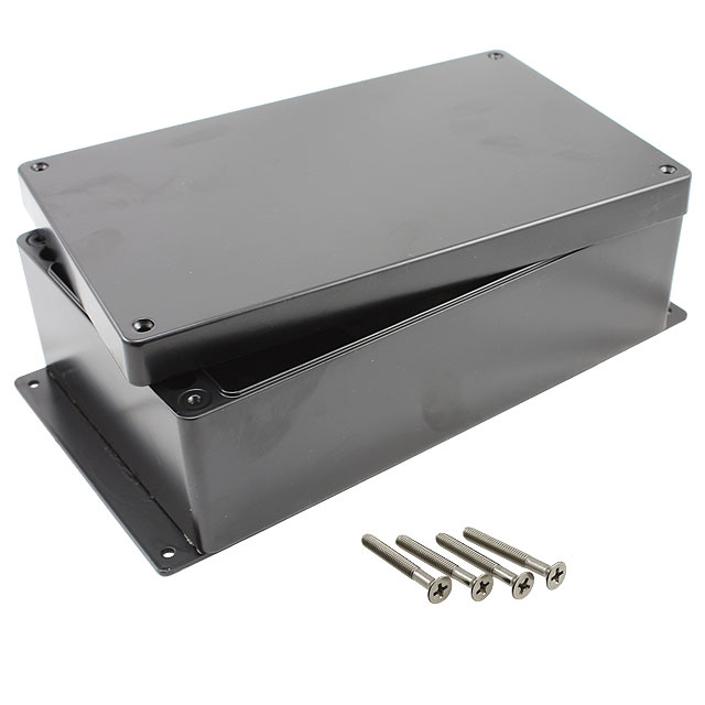 | Features | PCB Supports, Watertight | Detailed Description | Box with Mounting Flange Metal, Aluminum Black Cover Included 10.240" L x 6.300" W (260.10mm x 160.02mm) X 3.560" (90.42mm) |