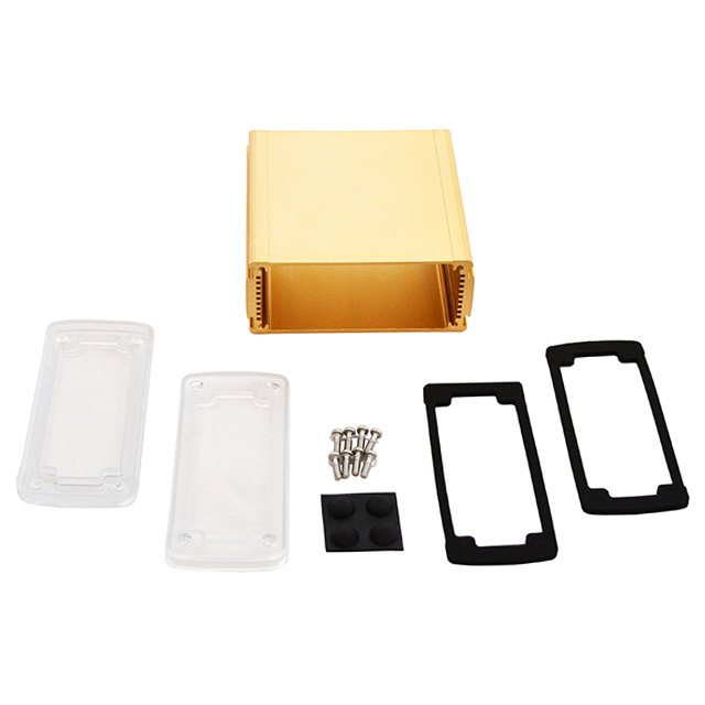 | Features | Card Guides, Sealing Gaskets | Detailed Description | Box Metal, Aluminum with Plastic, Polycarbonate Panels Clear, Gold End Panel(s) 4.685" L x 4.531" W (119.00mm x 115.10mm) X 2.031" (51.60mm) |