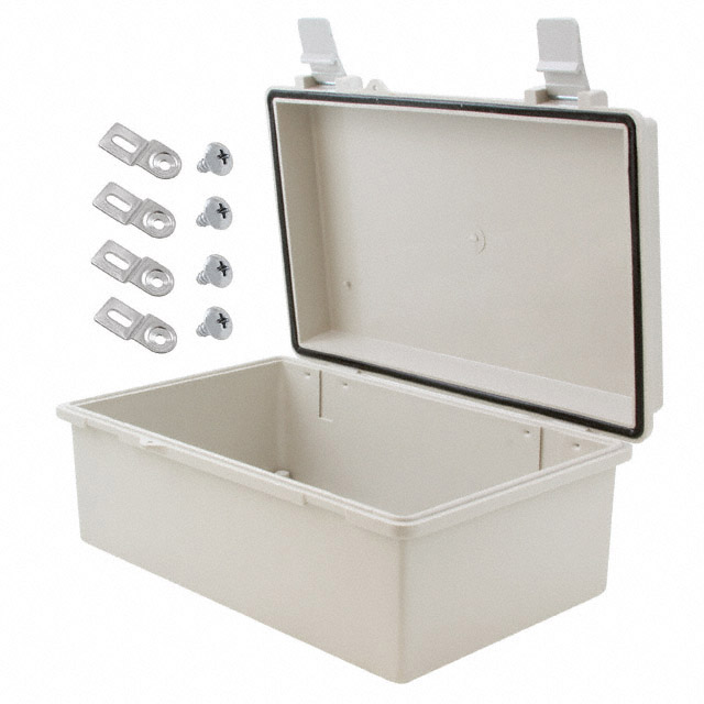 | Features | Non-Metallic Hinges, PCB Supports | Detailed Description | Box Plastic, ABS Gray Hinged Door, Lid 10.750" L x 6.780" W (273.05mm x 172.21mm) X 4.332" (110.03mm) |