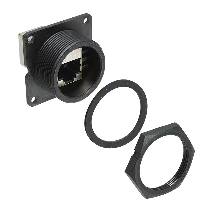 | Features | Circular Threaded Coupling | Detailed Description | Modular Coupler Connector Jack, 8p8c (RJ45) To Jack, 8p8c (RJ45) Cat5e Shielded |