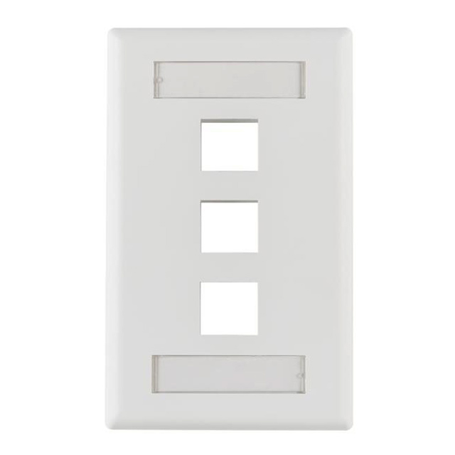 | Features | Label Cover/Holder with Labels, Mounting Hardware | Detailed Description | 3 Port Faceplate White Single Gang |
