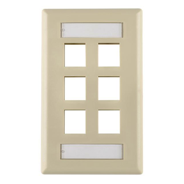 | Features | Label Cover/Holder with Labels, Mounting Hardware | Detailed Description | 6 Port Faceplate Ivory Single Gang |