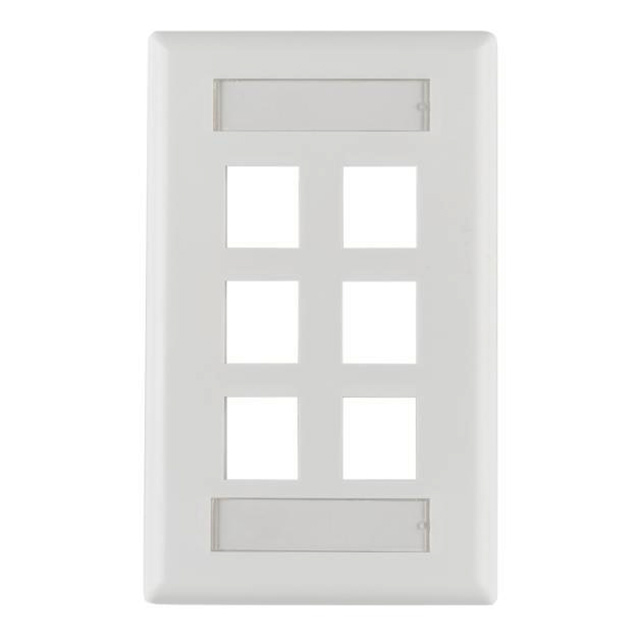 | Features | Label Cover/Holder with Labels, Mounting Hardware | Detailed Description | 6 Port Faceplate White Single Gang |