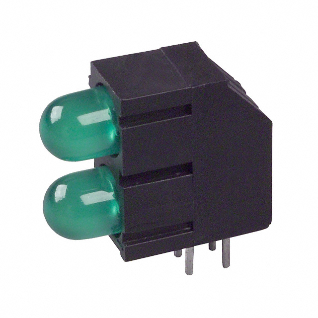 | Detailed Description | LED Circuit Board Indicator 2 High Green (x 2) Diffused, Tinted 2.2V 20mA Round with Domed Top, 5mm (T-1 3/4) Through Hole, Right Angle | Current | 20mA |
