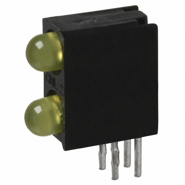 | Lead Free Status / RoHS Status | Lead free / RoHS Compliant | Detailed Description | LED Circuit Board Indicator 2 High Yellow (x 2) 2.1V 10mA Round with Domed Top, 3mm (T-1) Through Hole, Right Angle |